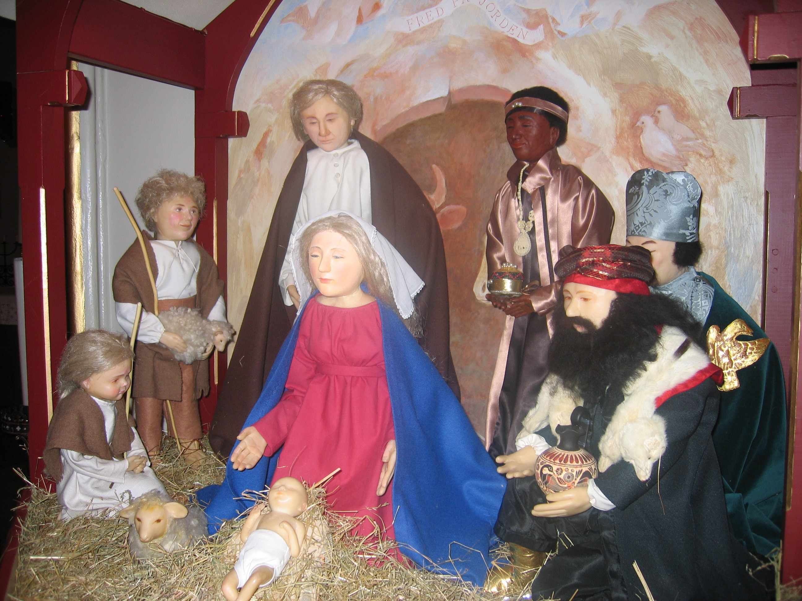 Vi hadde dyktige hjelpere med oss. Soknepresten i Skøyen, Christian Brodtkorb, gift med vår prost Anne-Lise Brodtkorb, laget noe av det aller viktigste, selve fundamentet, stallen. Han fant fine materialer og det ble et nydelig snekkerarbeid. Vår sokneprest Agnar Holme skaffet maling, blandet den dype rødfargen og la til slutt på de vakre gullforsiringene. Høyet ble skaffet fra Agnars mormors gård på Lista.