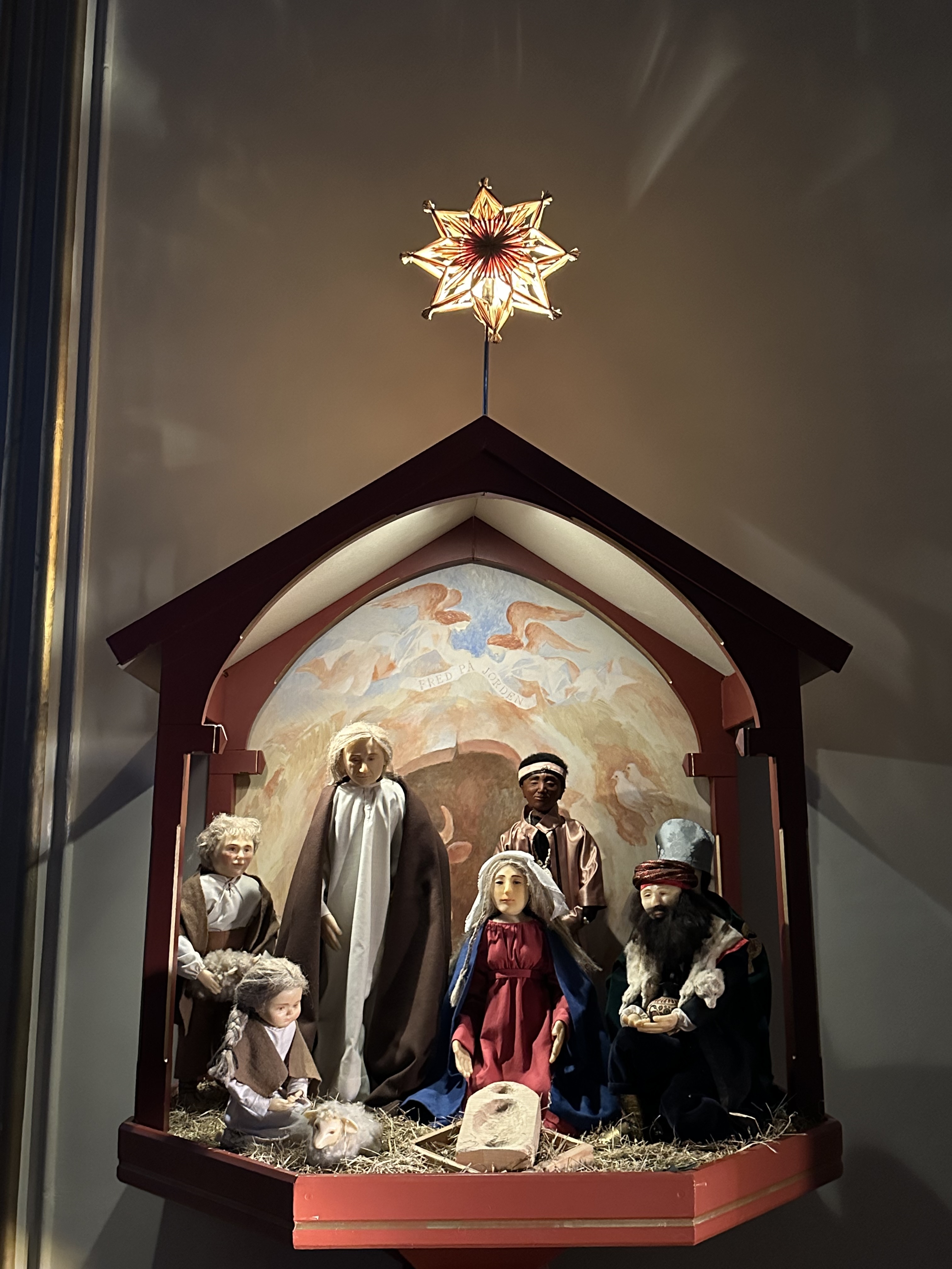 Den forkynnelsen vi hører fra prekestolen, skal krybben formidle uten ord, vise oss fortellingen ordløst. I mitt arbeid med ikonmaling vet jeg hvor viktig dette er. «Det som ordet kommuniserer ved hjelp av lyd, viser ikonet taust gjennom bildet.» hevdet Basilius den store på 300-tallet. Den skal åpne opp for det hellige, for Guds nærvær.
